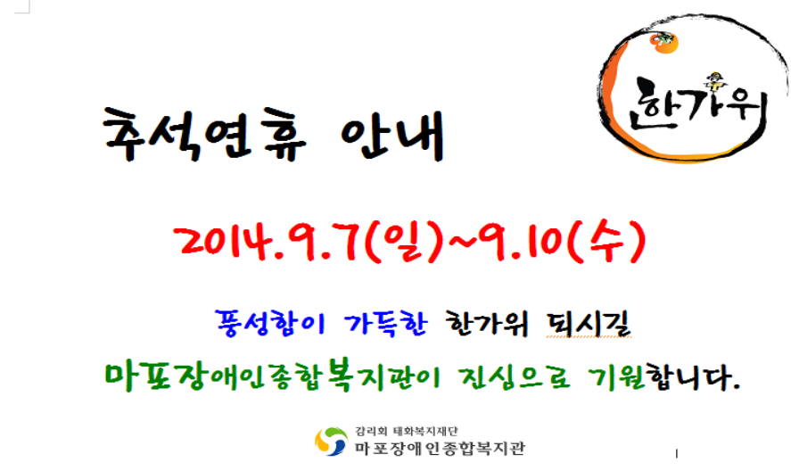 추석연휴 안내