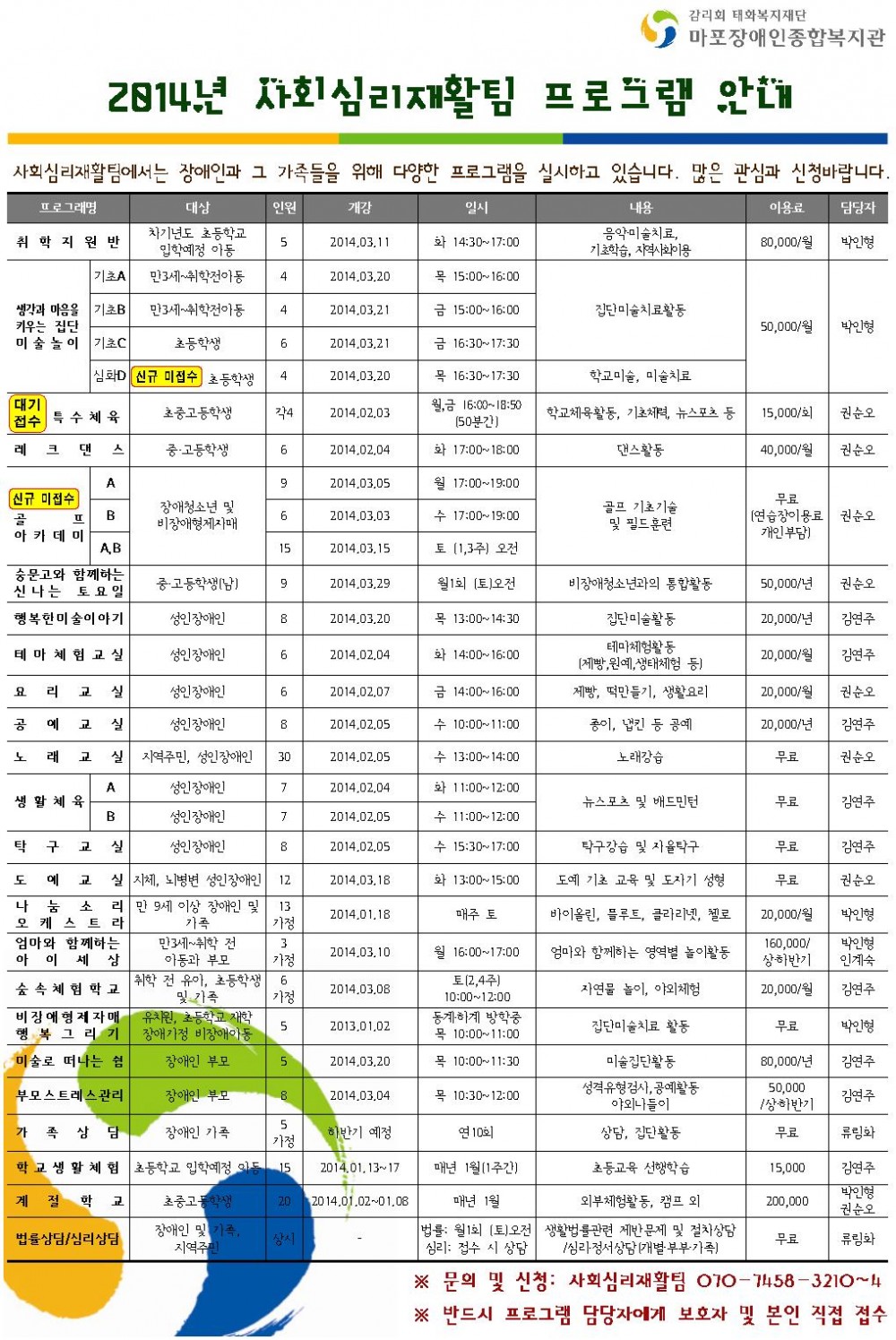 [사회심리재활팀] 2014년도 아동, 청소년, 성인, 가족지원 프로그램 안내