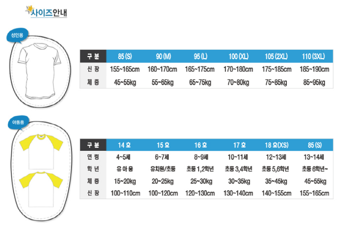 티사이즈 (아동 등) 문의시에 활용해주세요.