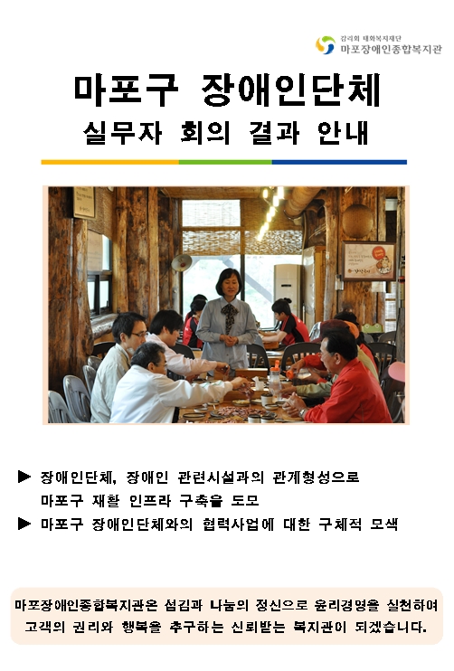 2011년 마포구 장애인단체 실무자 회의 결과 페이지 정보 작성자 관리자 댓글 0건 조회 11,739회 작성일 11-12-19 20:16 목록 본문 ~ 목록 이전글 2012년 마포복지목욕탕 구정연휴 휴무안내 12.01.12 다음글 2012 학교생활체험하기 "재미스쿨" 안내 11.12.19 댓글 0 댓글목록 등록된 댓글이 없습니다.