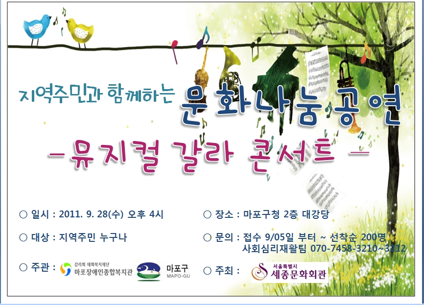 지역주민과 함께하는 문화나눔공연 (9.28- 뮤지컬 갈라 콘서트)