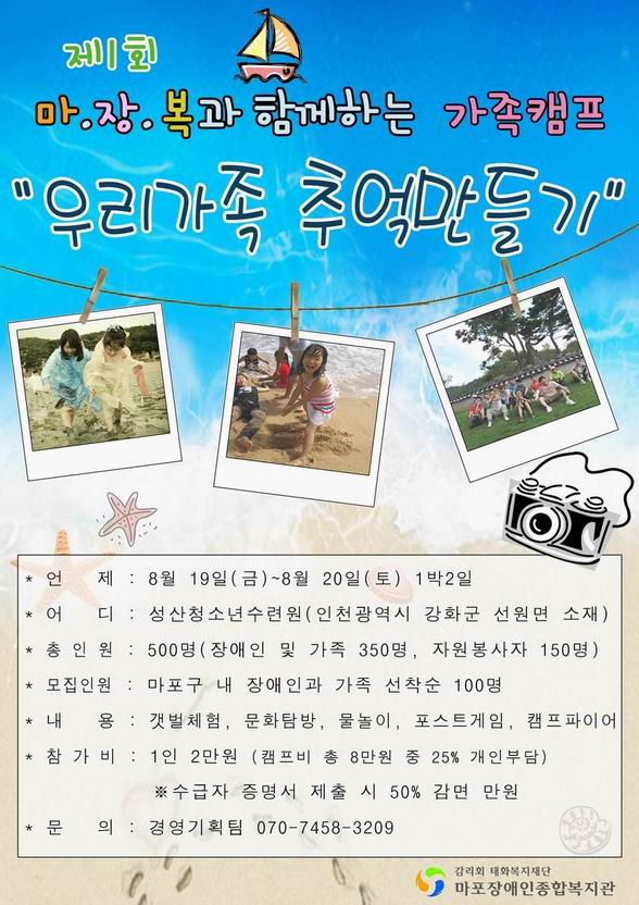 가족캠프 모집 안내 및 장애아동 여름방학 프로그램 안내