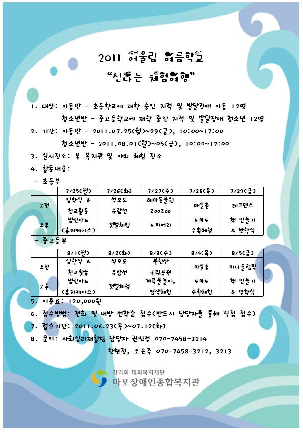 2011 어울림 여름학교 "신나는 체험여행" 이용자 모집