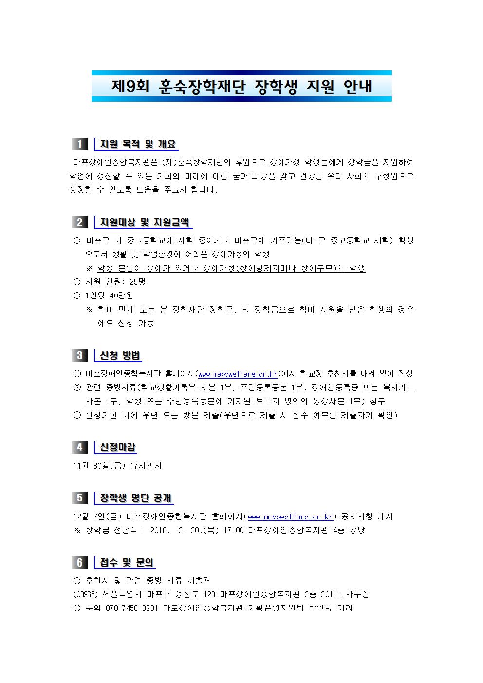 제9회 훈숙장학재단 장학생 지원 안내