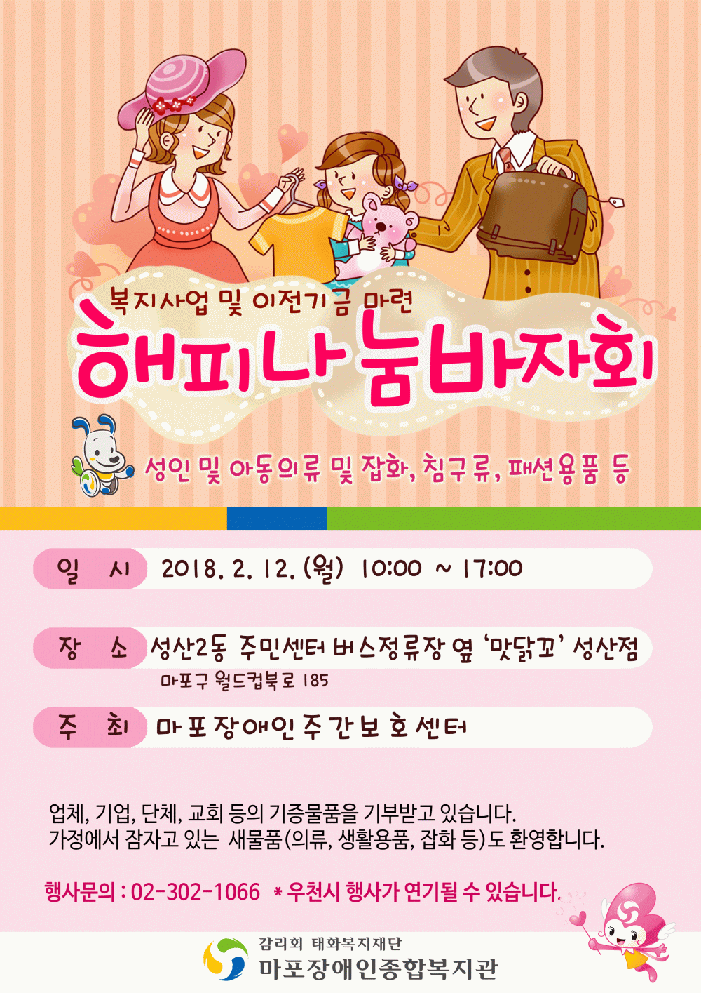 주간보호센터 이전 및 복지사업 기금마련을 위한 바자회가 열립니다.