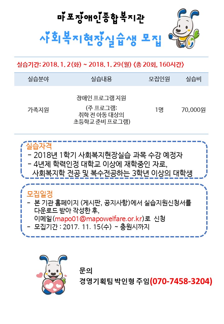 2018년 겨울방학 실습생 추가모집 공고 <마감>