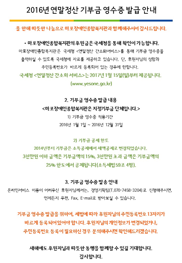 2016년 기부금 영수증 발급 안내 페이지 정보 작성자 박인형 댓글 0건 조회 11,374회 작성일 16-12-26 17:39 목록 본문 . 목록 이전글 놀이치료사 기간제 계약직 모집 16.12.29 다음글 단기계약직 모집 16.12.26 댓글 0 댓글목록 등록된 댓글이 없습니다.