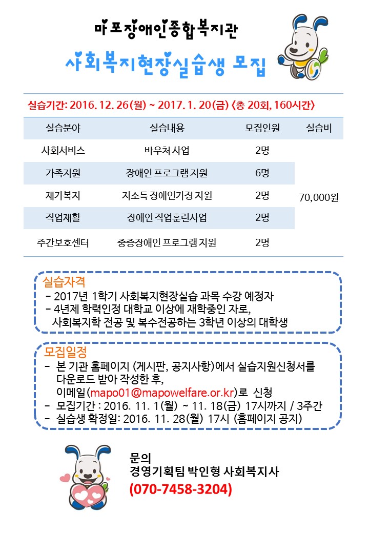 2017년 겨울방학 실습생 모집공고