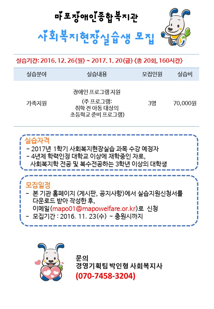 2017년 겨울방학 실습생 추가모집 공고 <마감>
