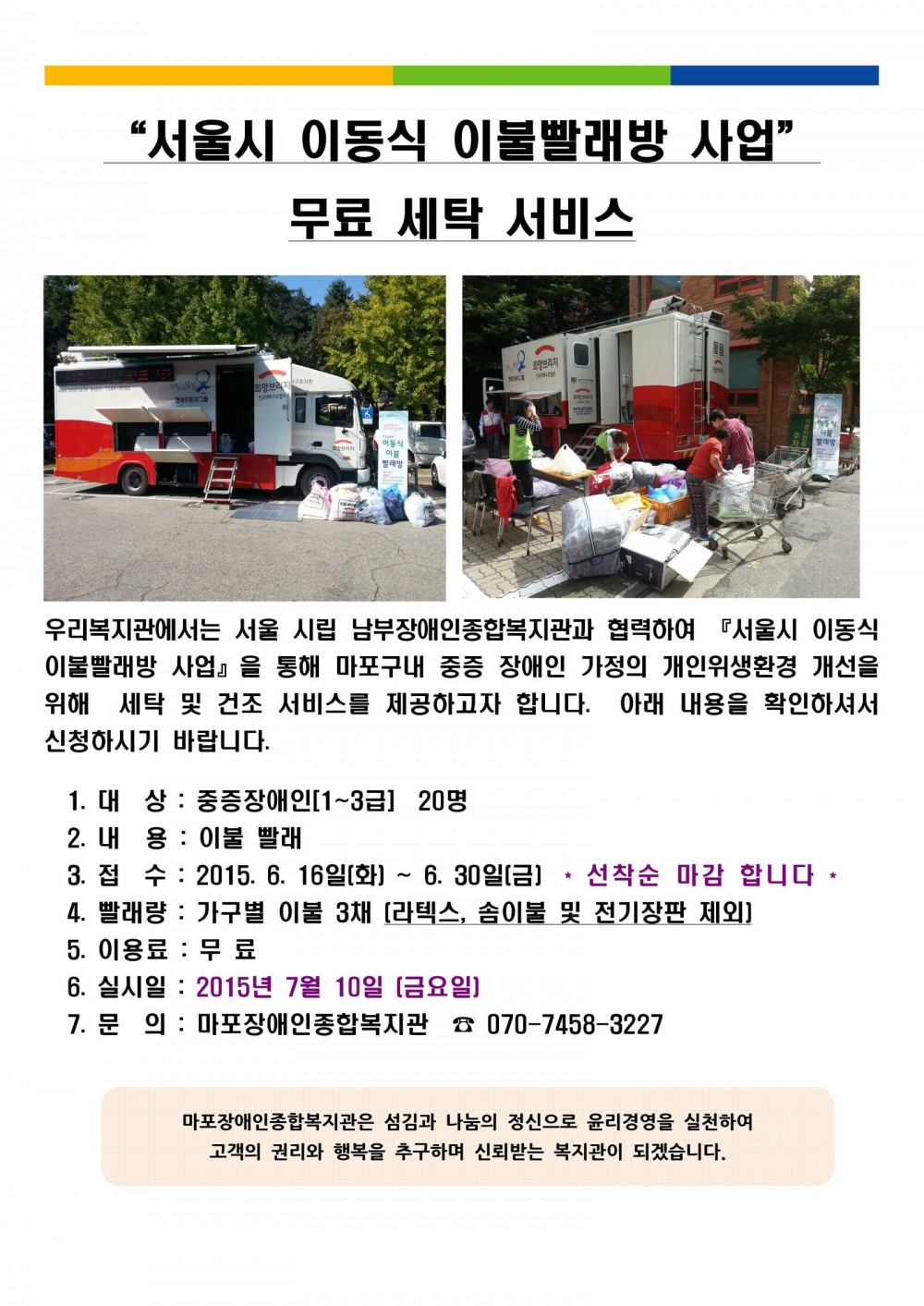 서울시 이동식 이불빨래방 무료 세탁 서비스 실시 페이지 정보 작성자 한현정 댓글 0건 조회 10,313회 작성일 15-06-16 11:06 목록 본문 목록 이전글 주민활동가 회의록 15.06.25 다음글 2015년 2학기 실습생 모집 공고 15.06.15 댓글 0 댓글목록 등록된 댓글이 없습니다.