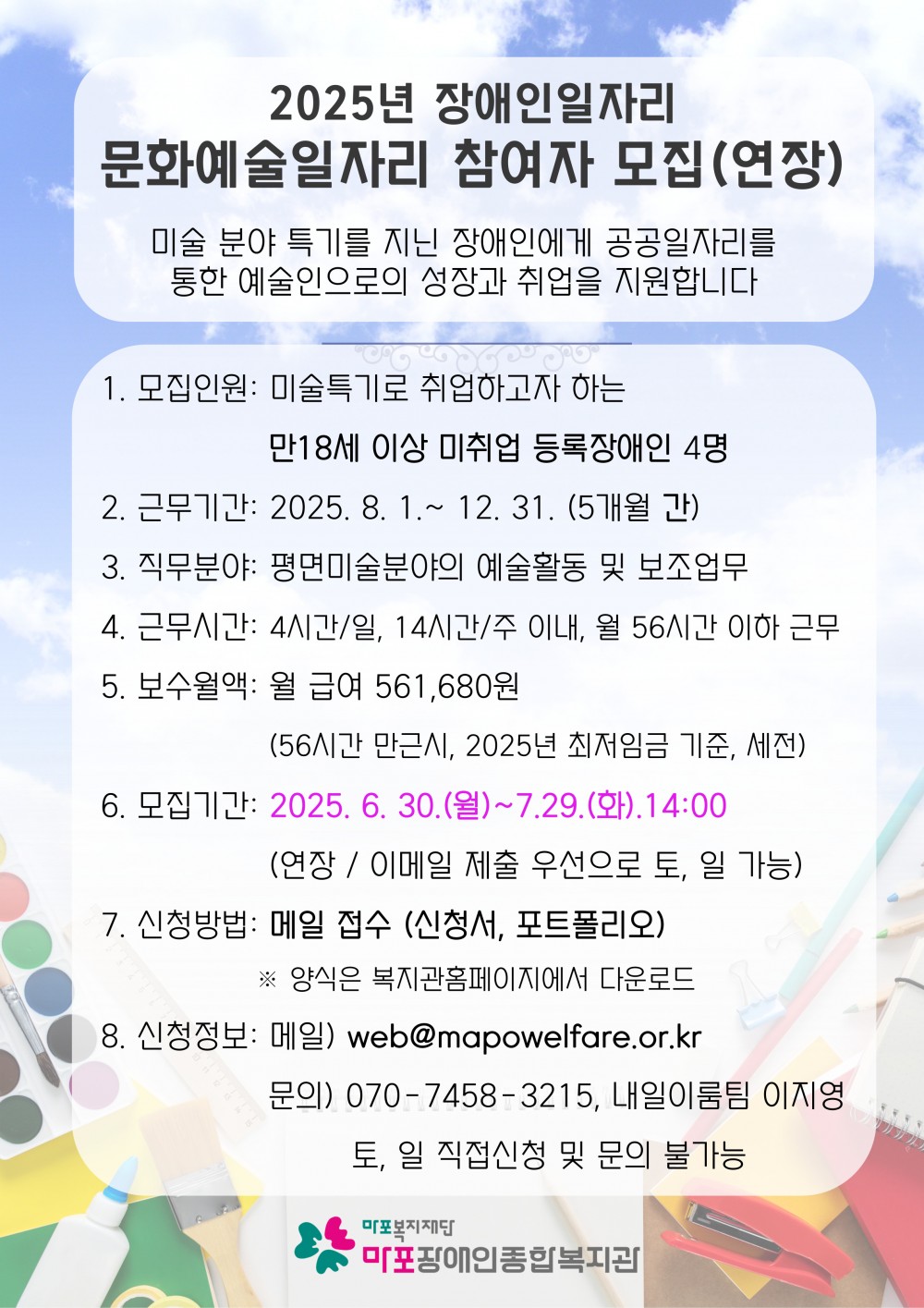 [모집연장] 2025년 장애인일자리 문화예술일자리 근로자 추가모집