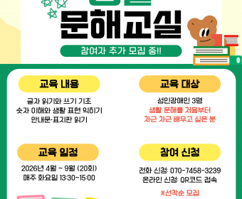 2026 생활문해교실 참여자 추가 모집